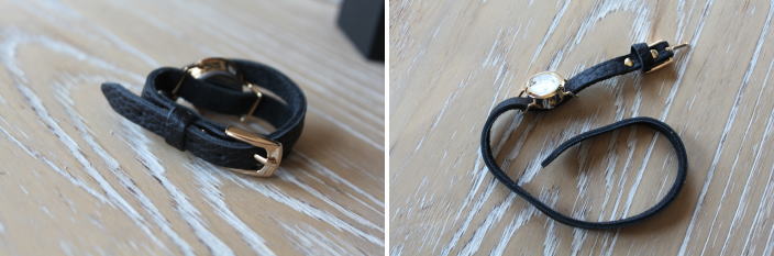 サイズ/ 画面参照 ----------------------------------- 商品により誤差が生じる場合や 着用されるとサイズ感が異なる場合がありますが ご了承ください ----------------------------------- レザーブレス時計 ダブル ブラック 6578円(税込) |