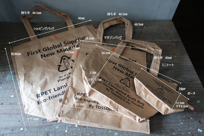 リサイクルペットボトルペーパーバッグ 880円〜1100円(税込) ![]() ----------------------------------- ペットボトルをリサイクルしてつくられた 素材の ペーパーバッグ 丈夫で 使っていくうちに くたっと味わいの出る素材のバッグです 軽くて 補助バックとしても重宝しそう! ショッピングバック マガジンバック ミニトートバック ポーチ の4種類 英文字デザインや 機能性も◎ そして お洒落なバッグです ----------------------------------- ![]() リサイクルペットボトルペーパー ショッピングバッグ ![]() ![]() リサイクルペットボトルペーパー マガジンバッグ ![]() ![]() リサイクルペットボトルペーパー ミニトートバッグ ![]() ![]() リサイクルペットボトルペーパー ポーチ ![]() ![]() ![]() ![]() ![]() ----------------------------------- サイズ / 画像参照 ----------------------------------- 商品により誤差が生じる場合や 着用されるとサイズ感が異なる場合がありますが ご了承ください また 素材の特性上 多少の傷や 風合いの違いが生じる場合があります。 ----------------------------------- リサイクルペットボトルペーパー ポーチ 880円(税込) リサイクルペットボトルペーパー ショッピングバッグ 990円(税込) リサイクルペットボトルペーパー マガジンバッグ 990円(税込) リサイクルペットボトルペーパー ミニトートバッグ 1100円(税込)