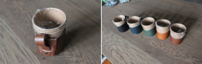 そんな時にぐぐっとおしゃれに 便利なのがレザーの紙コップホルダー